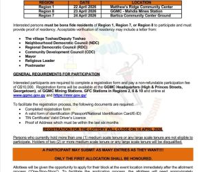 Ministry and Natural Resources and the Guyana Geology and Mines Commission lottery of Medium-Scale Properties Download Application Form by clicking the link: Lottery Registration Form – April 2026 Continue reading