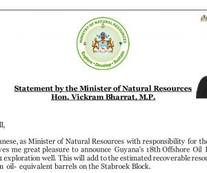 MEDIA STATEMENT Guyana’s recoverable oil resources increased to approximately 10 billion oil equivalent barrels with newest Cataback-1 well discovery Guyana currently has the 3rd highest oil reserves in the Latin America and Caribbean Region, and as the petroleum sector continues to drive the country’s economic growth, the Ministry of Natural…