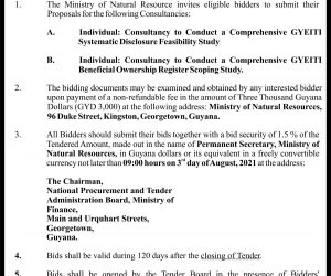 TOR & REOI for the Consulting Services for Independent Administrator Services for Preparation of Guyana’s 3rd EITI Report Continue reading
